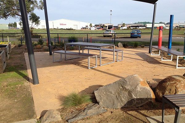 - a patterned concrete ‘floor’ for the outdoor meeting/eating area and other infrastructure.